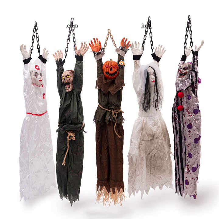 Halloween Électrique Induction Décor Son Avtivé Vibration Lueur Clown Citrouille Épouvantail Zombie Sanglant Infirmière Mariée Accrocher Fantôme