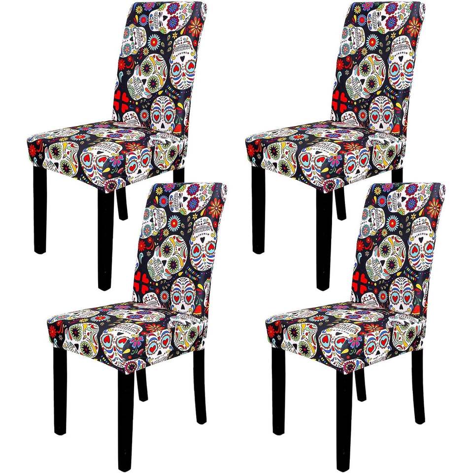 Housses de chaise en spandex à motif de crâne floral d'Halloween Tissu extensible de 4 pièces pour la cérémonie à domicile en stock