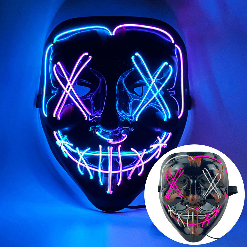 Masque lumineux à LED en forme de fantôme pour Halloween Masque clignotant en PVC sanglant en fil EL pour Cosplay et Rave Party