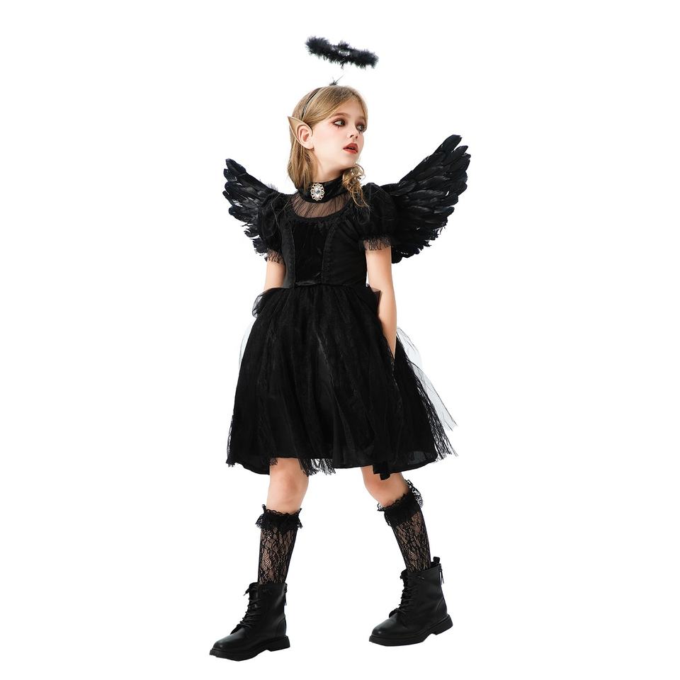 Costume d'Halloween pour filles, robe d'ange, de démon ou de vampire, tenue pour enfants, robe de fée, costume de spectacle