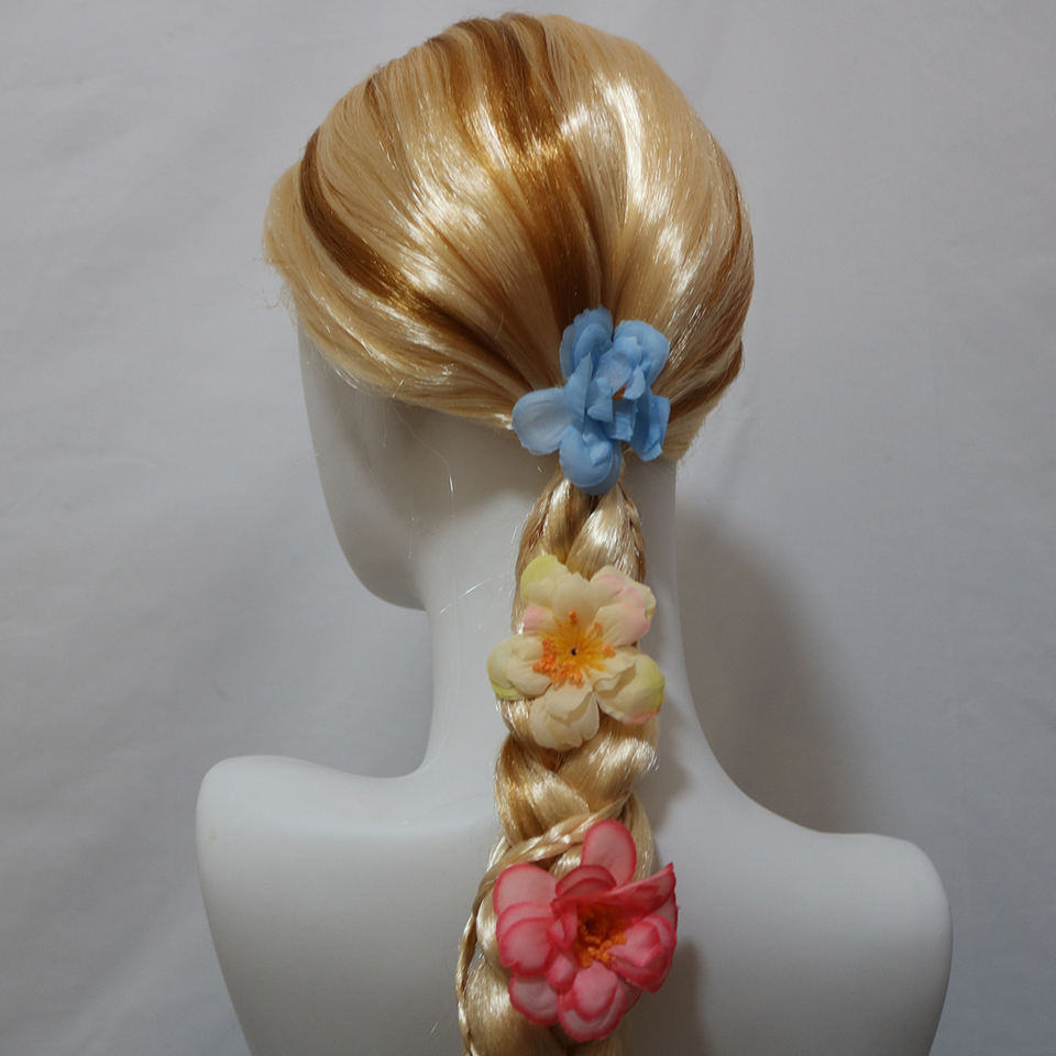 Perruque longue tressée de princesse Rapunzel pour fête de cosplay d'Halloween pour filles avec fleur DISP-004