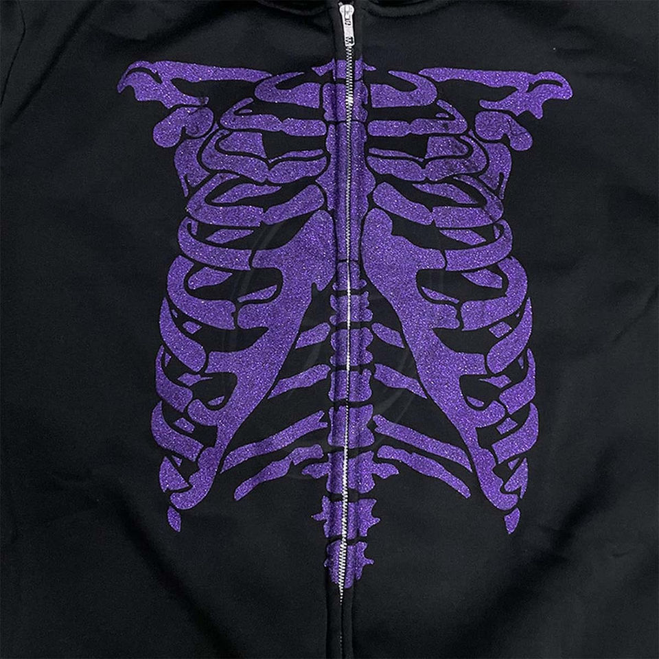 Halloween Hoodie for Men Women Long Sleeve Breathable Zip up Thermal Glitter Gothic Y2K Jacket Skeleton Streetwear