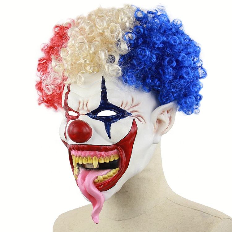 Halloween Horreur Latex Réaliste Longue Langue de Serpent Clown Masque avec Perruque Joker Cosplay Mal Clown Masques de Fête