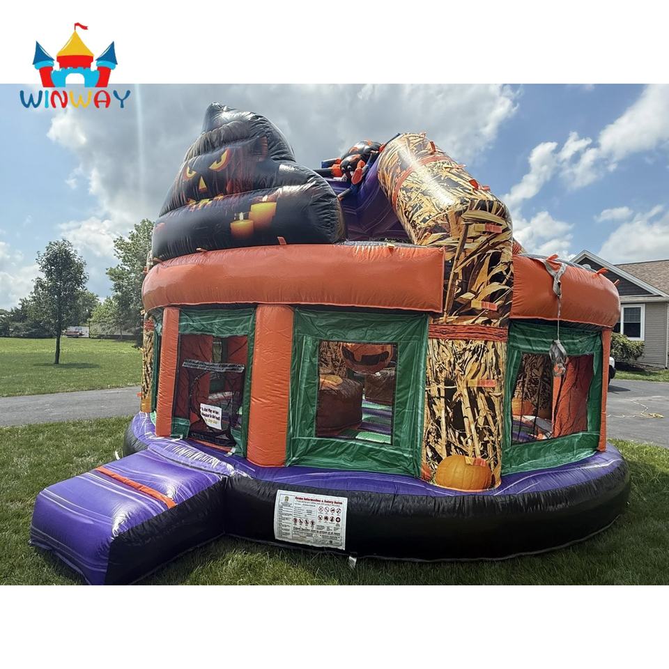 Maison gonflable d'Halloween avec décor d'araignée et de citrouille pour fête d'enfants, événement en plein air, festival et entreprise de location