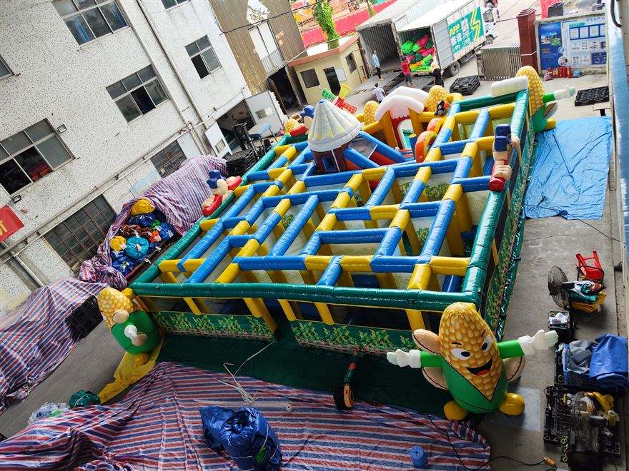 Labyrinthe de maïs gonflable Halloween, labyrinthe de maïs gonflable, jeu de maison gonflable pour les fêtes en plein air/festival des récoltes d'automne
