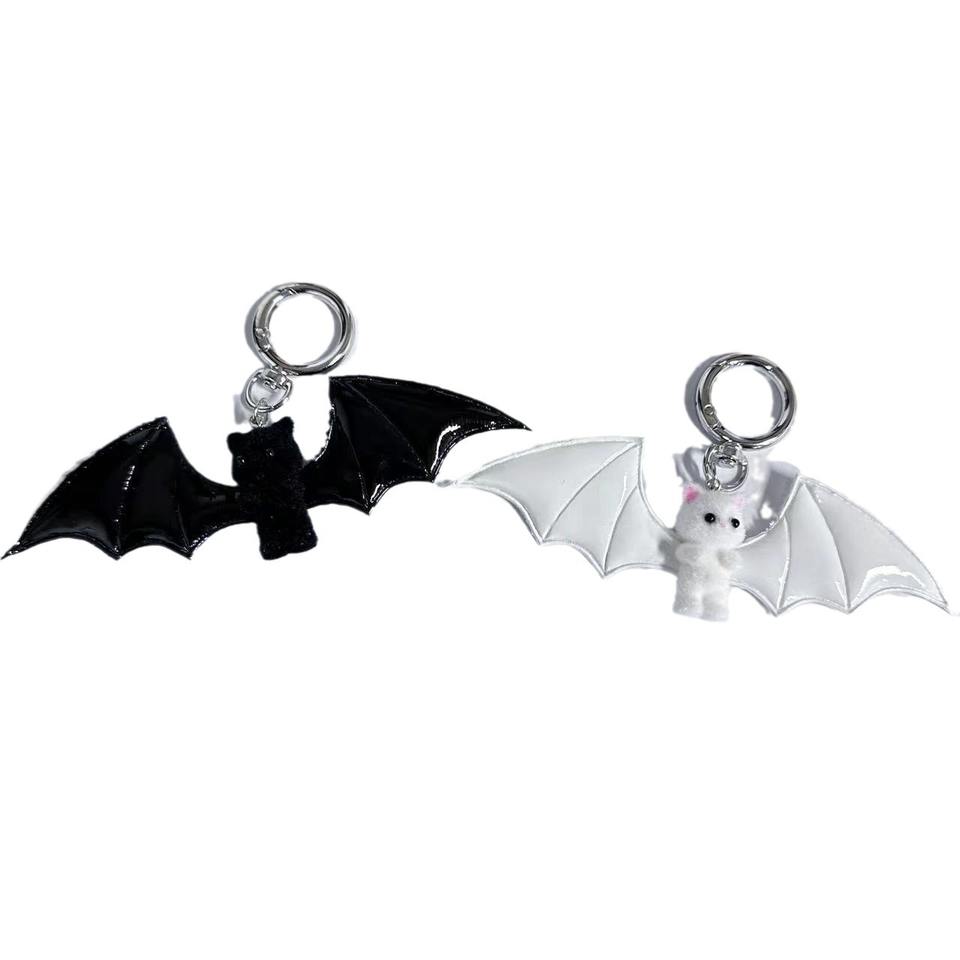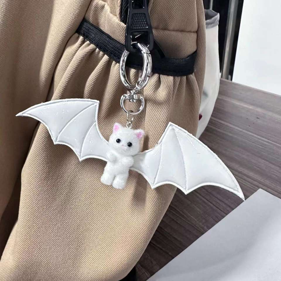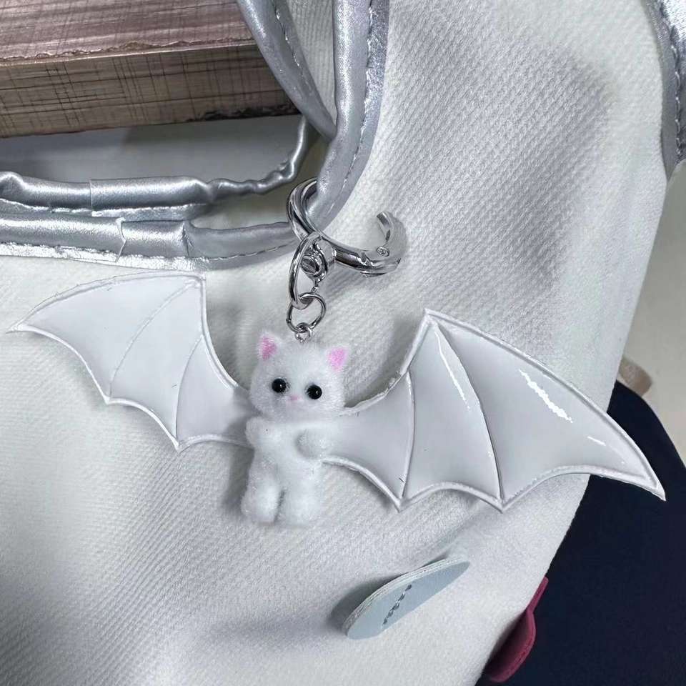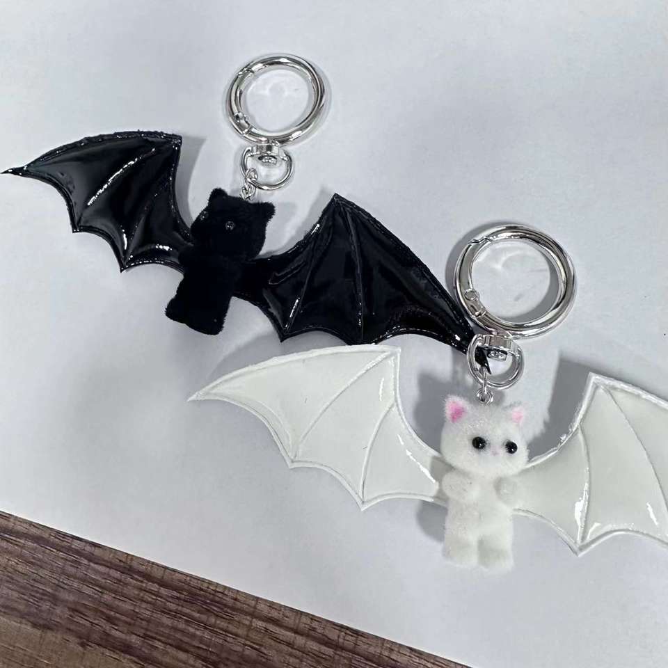 Porte-clés en caoutchouc cool et mignon, pendentif de sac chat petit diable Halloween, noir et blanc foncé, porte-clés pour téléphone