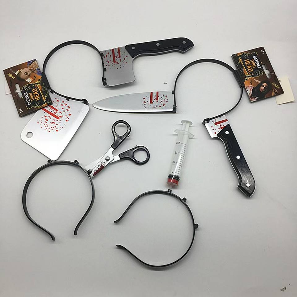 Bandeaux Cosplay Prop pour Halloween, accessoire de simulation plastique, couteau de cuisine percé, baril d'aiguille