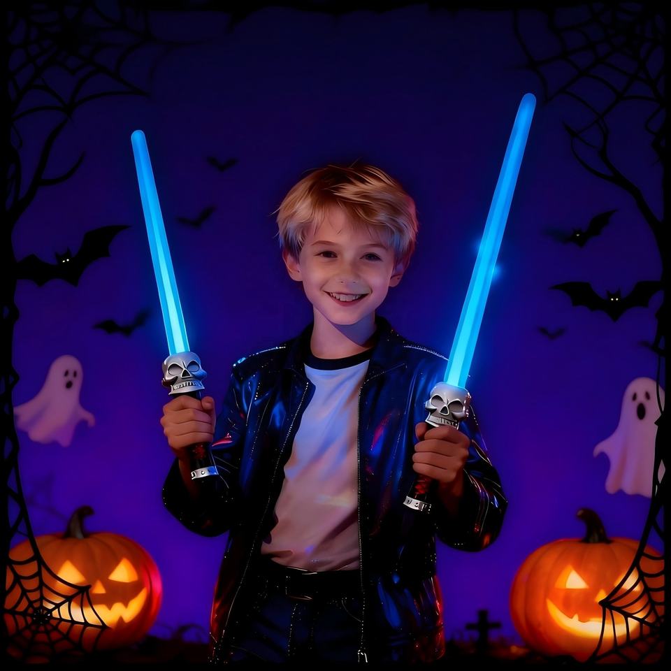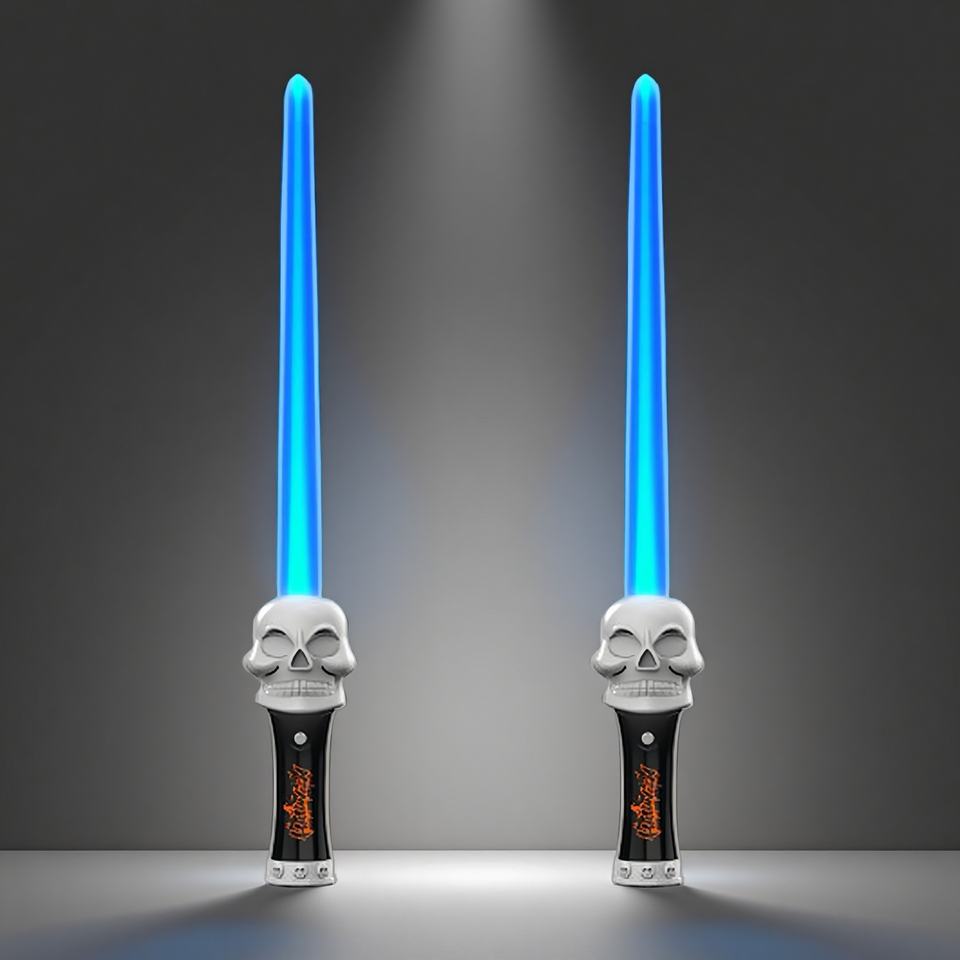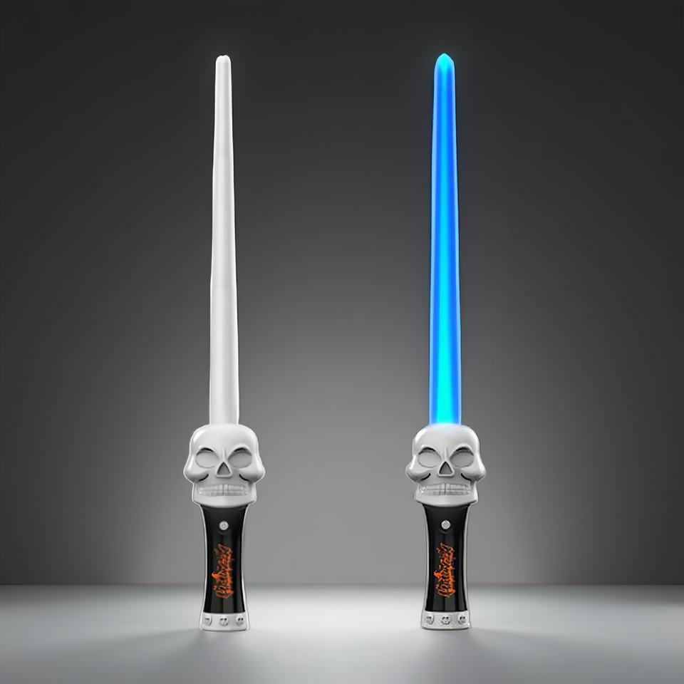 Sabre LED en plastique pour Halloween, logo personnalisé, poignée tête de mort effrayante, lumières multicolores, arc-en-ciel amusant, sabre laser extensible