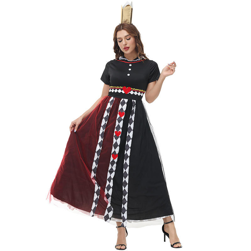 Halloween Poker Queen Red Queen Love Dress Alice Wonderland Stage Costume for Children Christmas Princess Fairy TV Hooded Cloak