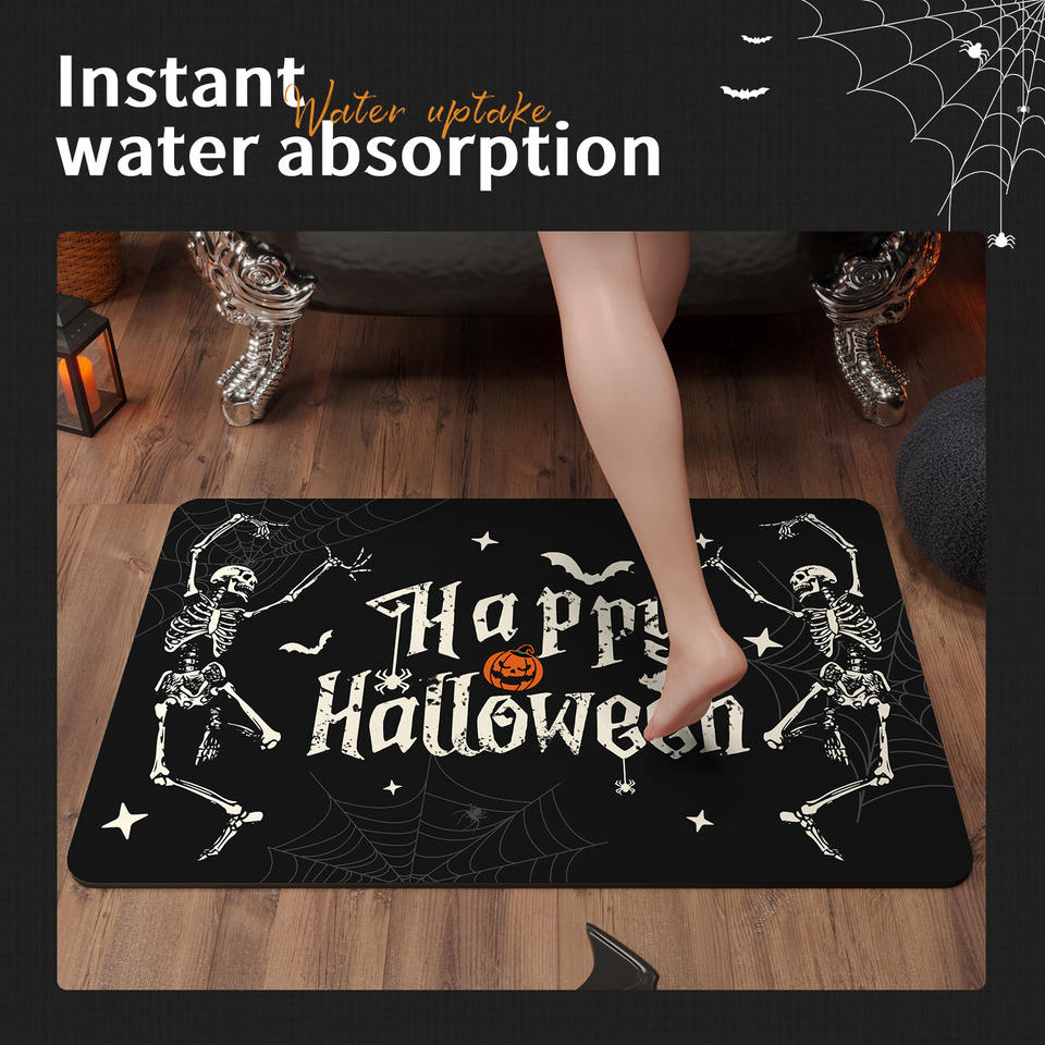 Tapis de sol décoratif Halloween en forme de crâne, rectangulaire, en terre de diatomée, pour salle de bain, facile à nettoyer