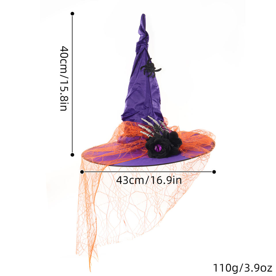 Halloween rayé à volants dentelle chapeau de sorcière fête boule Cosplay magicien foncé doigt os décoration unisexe 100% Polyester