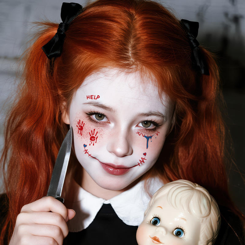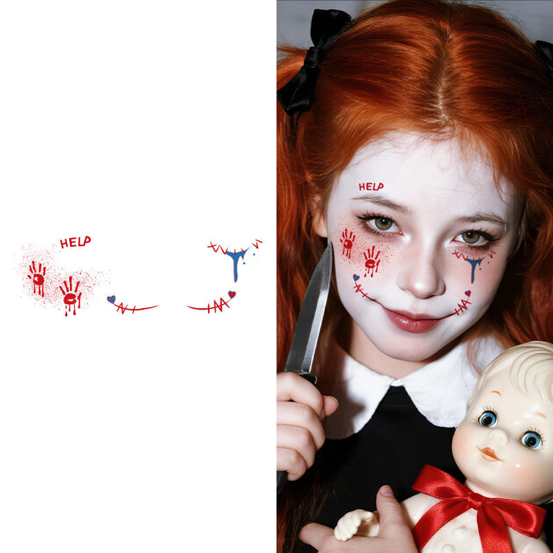 Halloween tatouages temporaires autocollant Halloween effrayant sang main Joker mal Halloween maquillage étanche tatouage pour visage bras
