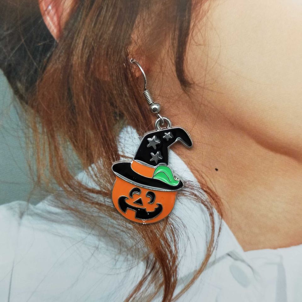 Product name:Halloween Trendy Cute Pumpkin alloy oil drop earrings for gils