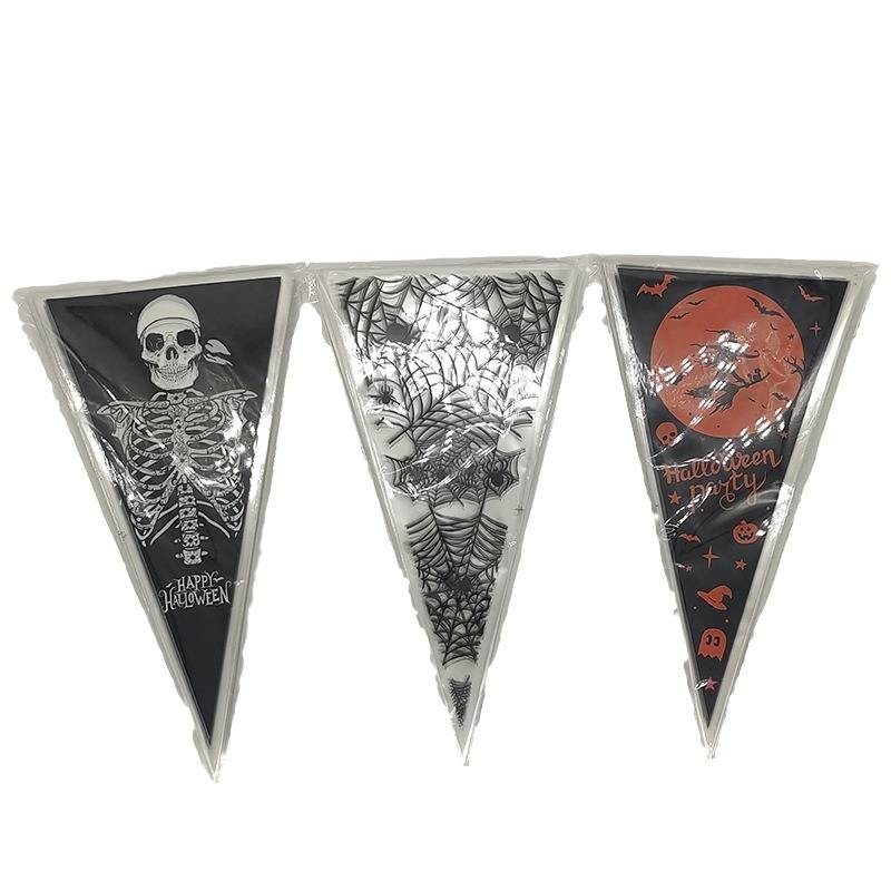 Sac cadeau d'Halloween triangulaire avec éléments d'horreur, idéal pour emballer les biscuits et les bonbons