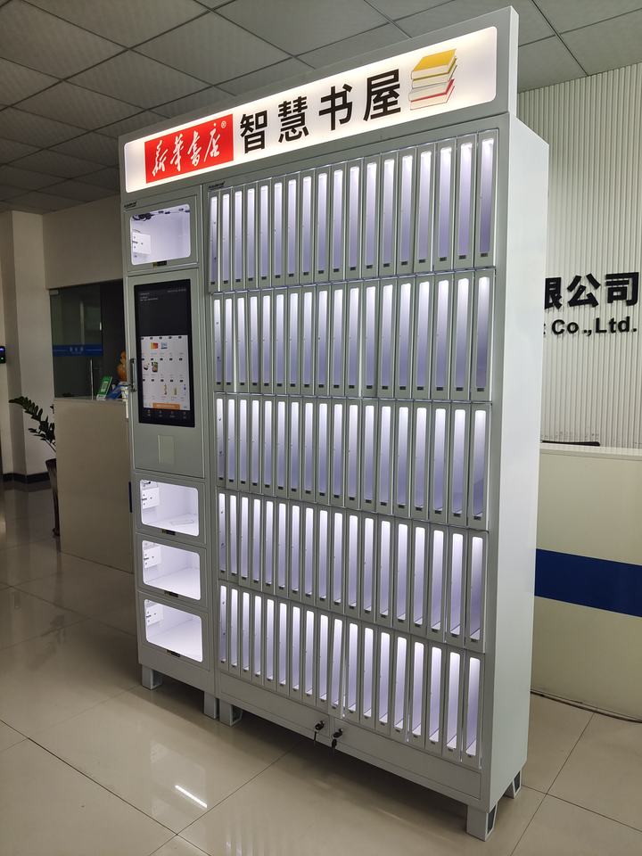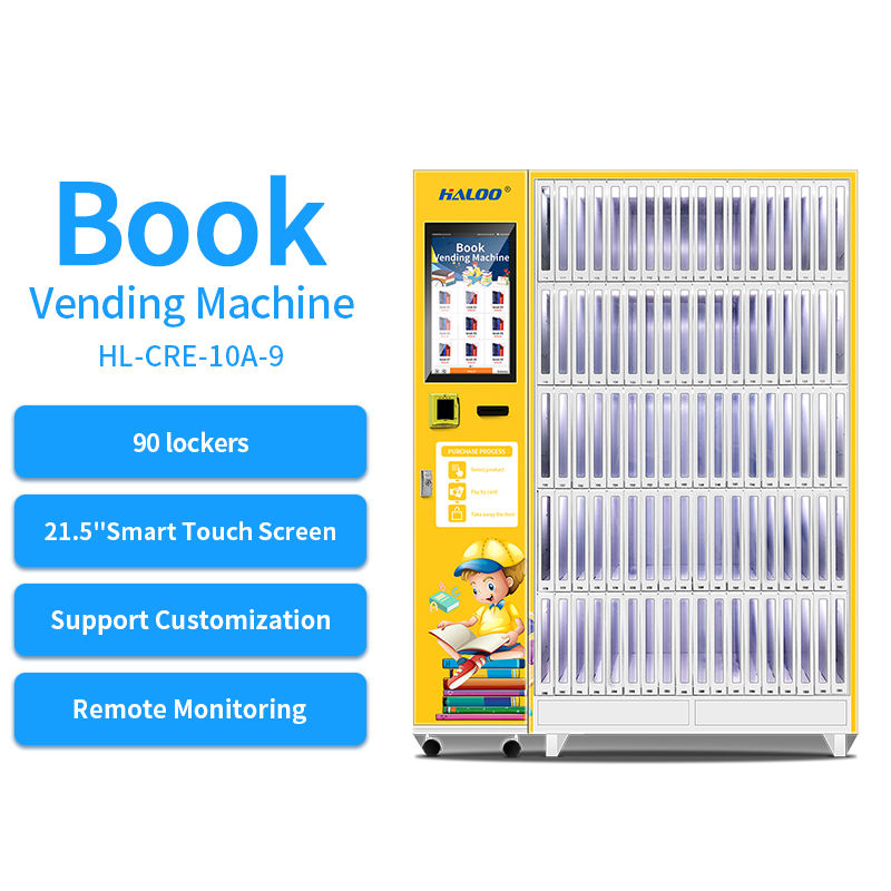 Fournisseur de distributeurs automatiques Haloo, distributeur automatique de livres, magazines et papeterie à 90 casiers pour librairie, école, collège, bibliothèque, centre commercial