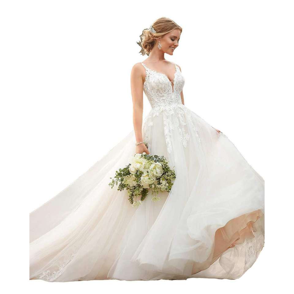 Halter Neck Deep V Backless Lace Ball Gown Wedding Dress White Floor Length Train For Bridal Wear