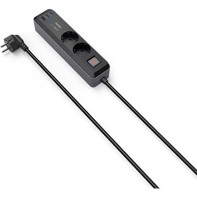 Hama 65W PD Interruptor 2Tomas 1xUSB-A + 2XUSB-C 1,4m Negro/Gris Prise WiFi