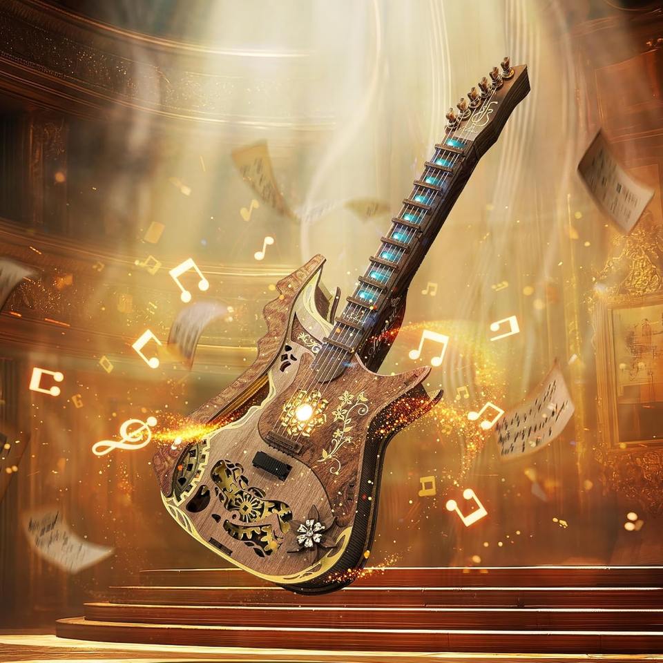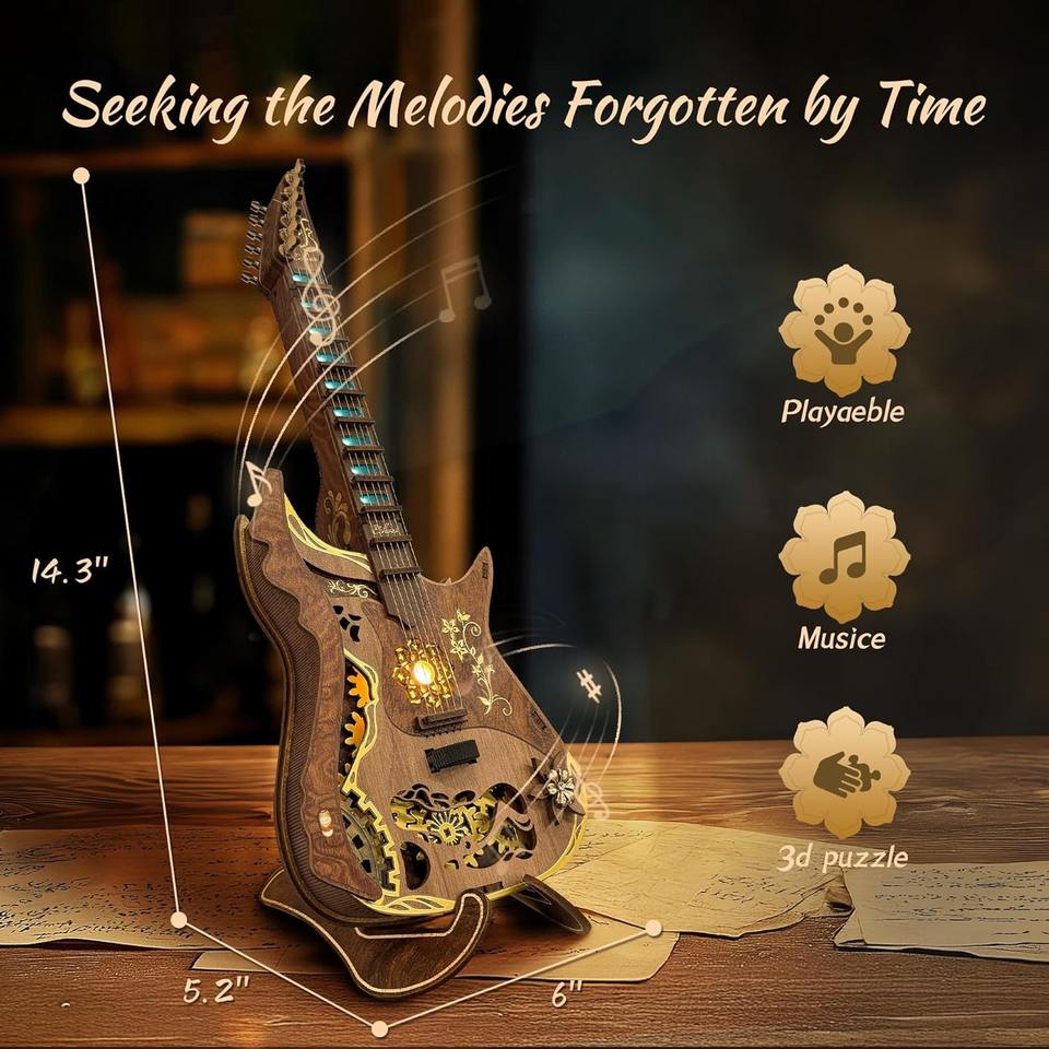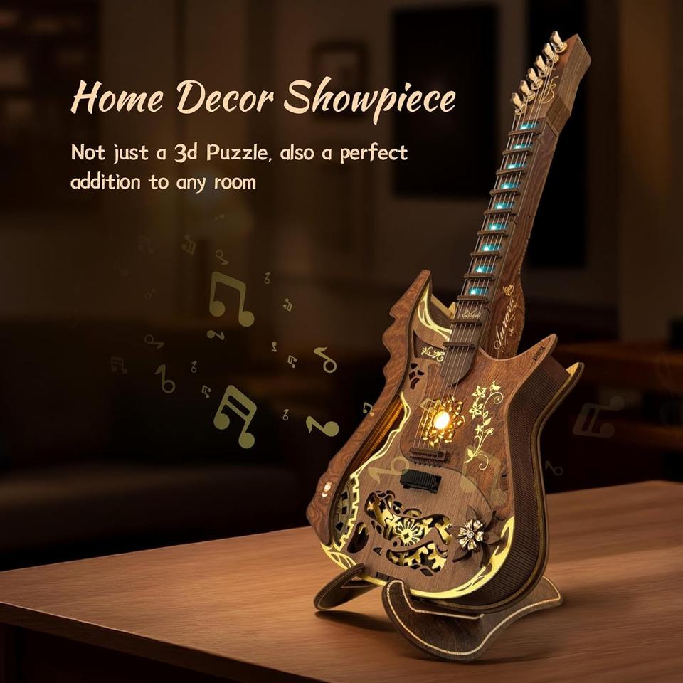 Hamaileon DIY 3D Playable Guitar Wooden Puzzle Functional SQ57 Model Kits Music Box Gifts Home Decor Crafts