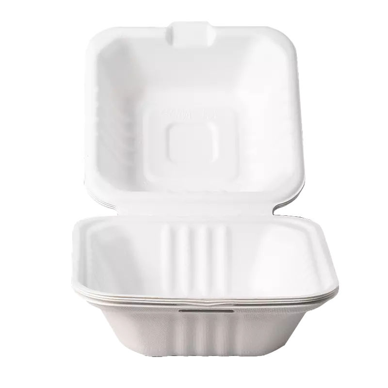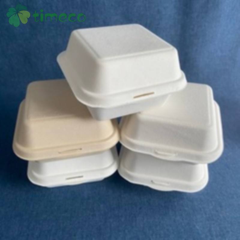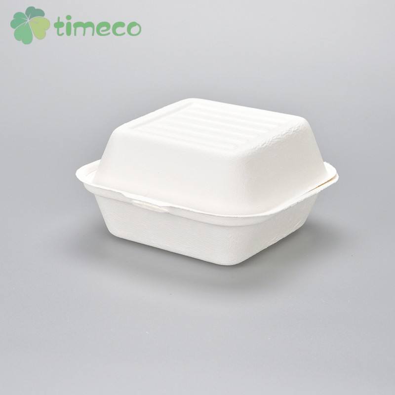 Boîte à hamburger en bagasse 100 % biodégradable, contenant alimentaire jetable, sans PFAS, avec couvercle, marque Timeco