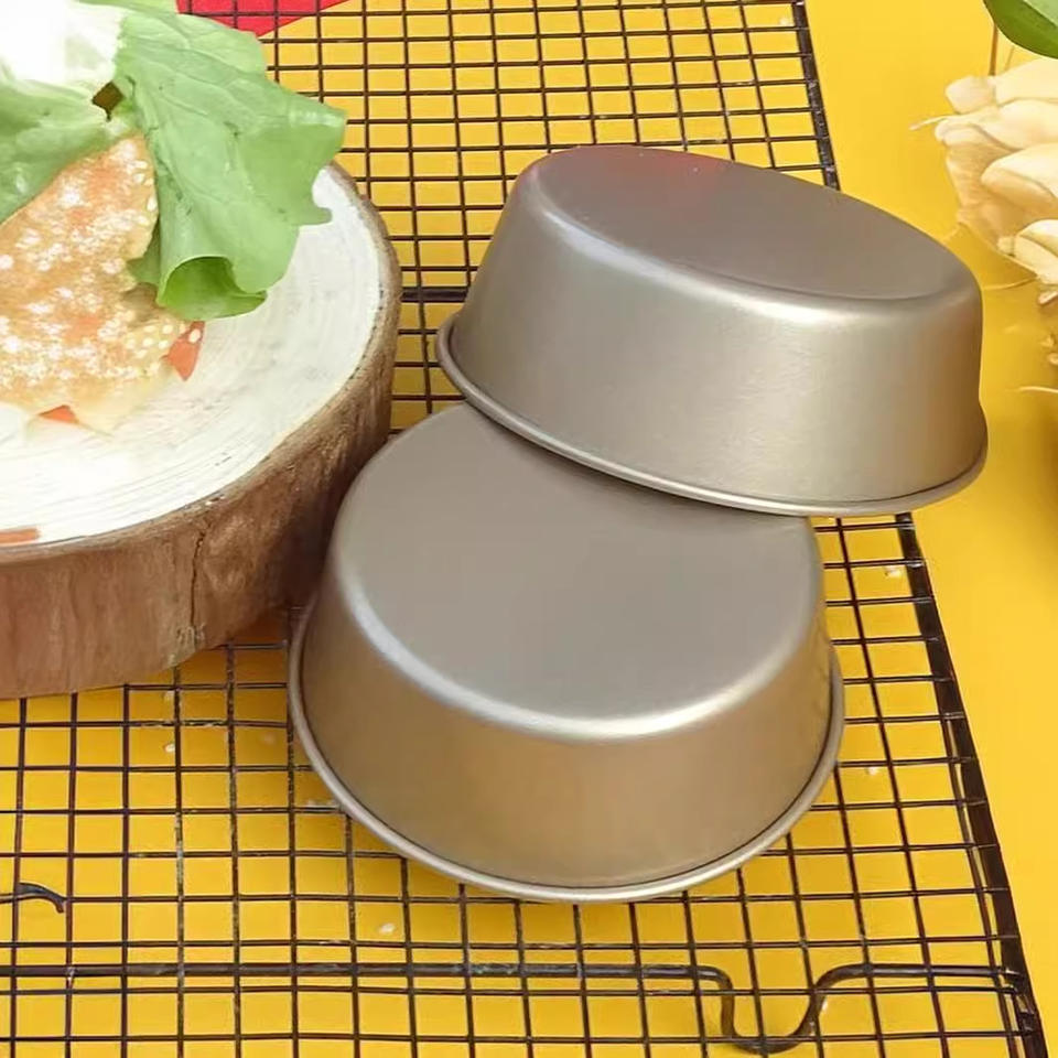 Hamburger Mold 4 Inch Round Baking Pan For Mini Burger Bun Cake Mold Gold Color Dishwasher Safe