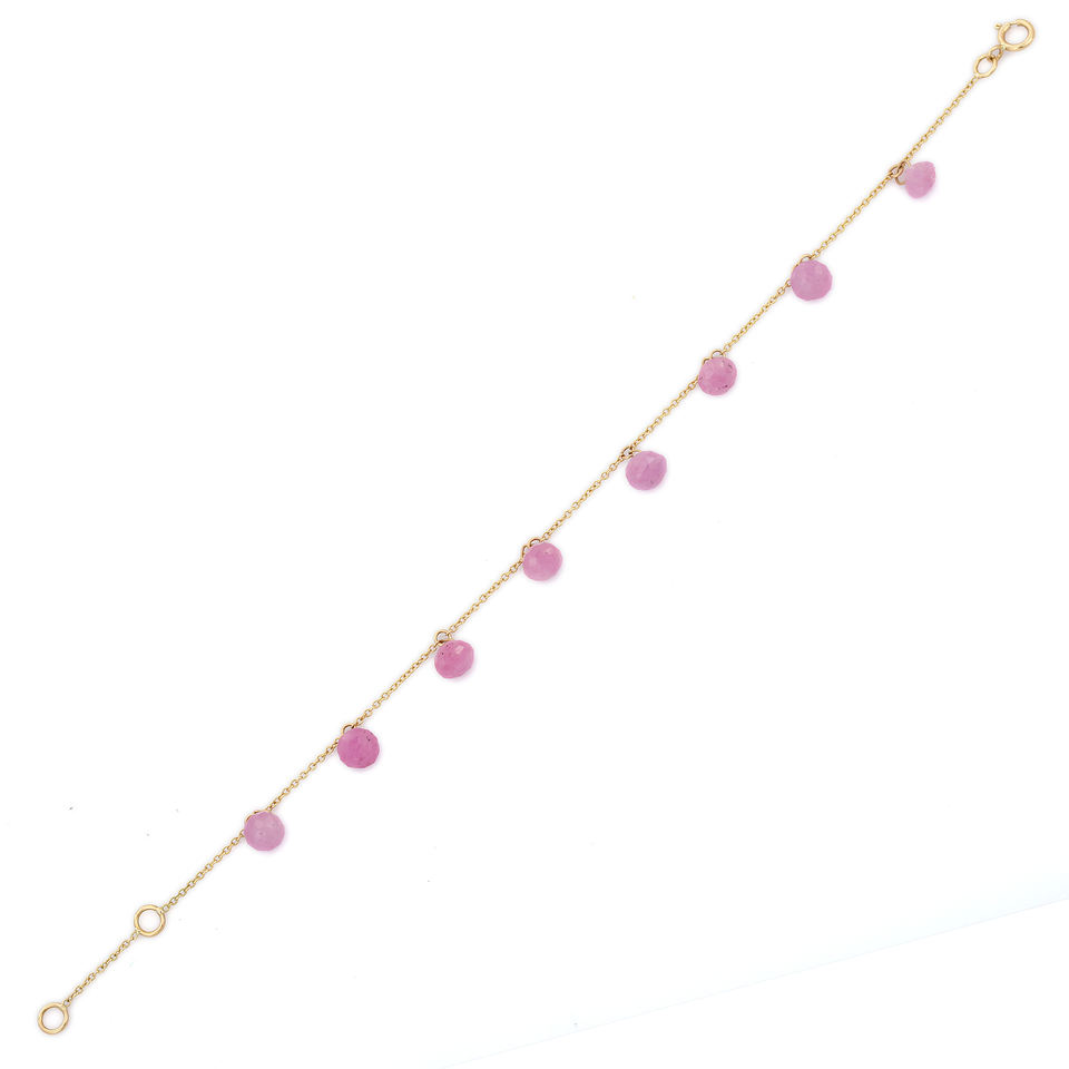 Hamdcrafted 18K solide or jaune Bracelet de pierres précieuses mignon minimaliste naturel goutte rose saphir pour mariage fête cadeau breloques