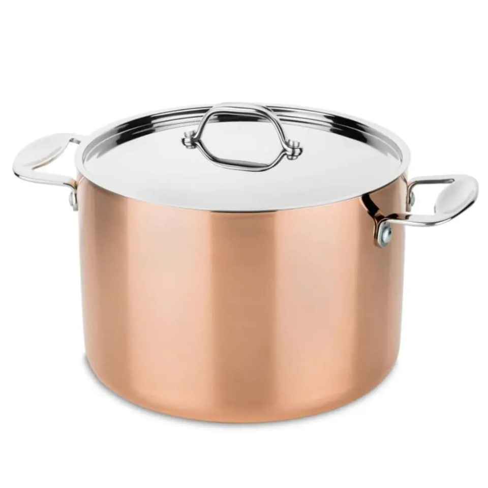 Marmite en cuivre martelé avec couvercle, poignées en laiton, fait main, pour soupes et ragoûts