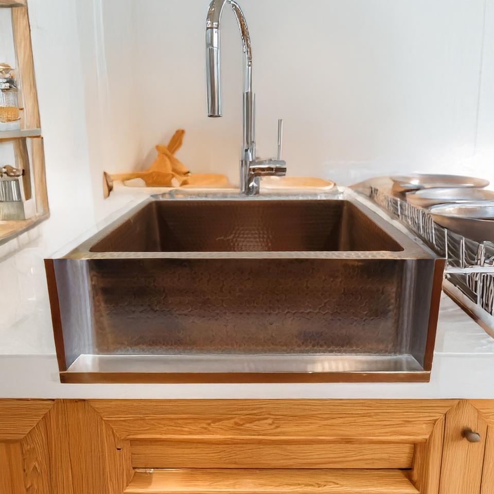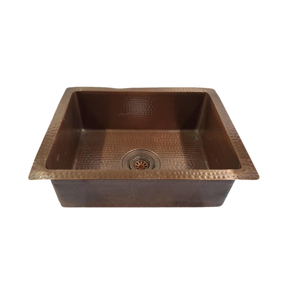 Évier de cuisine en cuivre martelé rectangulaire, fait à la main, en cuivre antique, évier de cuisine en cuivre en gros, évier à cuve unique.