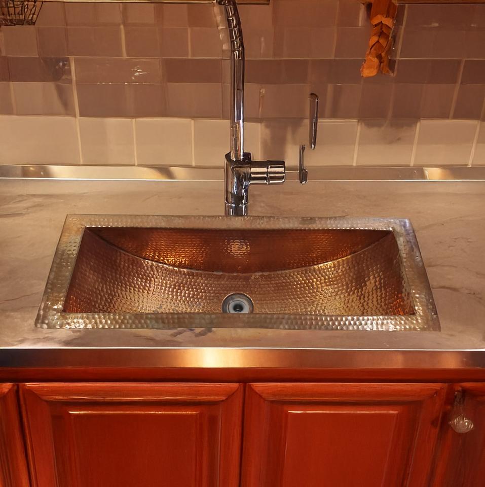 Évier de cuisine en cuivre martelé rectangulaire, fait à la main, en cuivre antique, évier martelé en gros, évier de cuisine à cuve unique.
