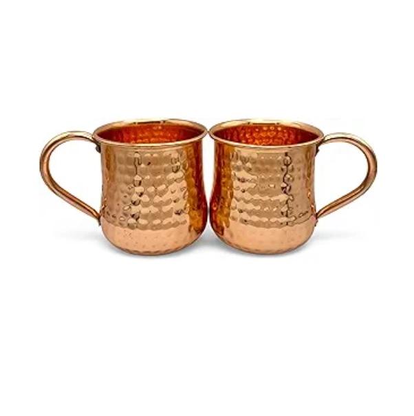 Ensemble de 2 tasses rondes en cuivre martelé et acier inoxydable, 100% cuivre massif pur, 16 oz, pour l'eau et les cocktails