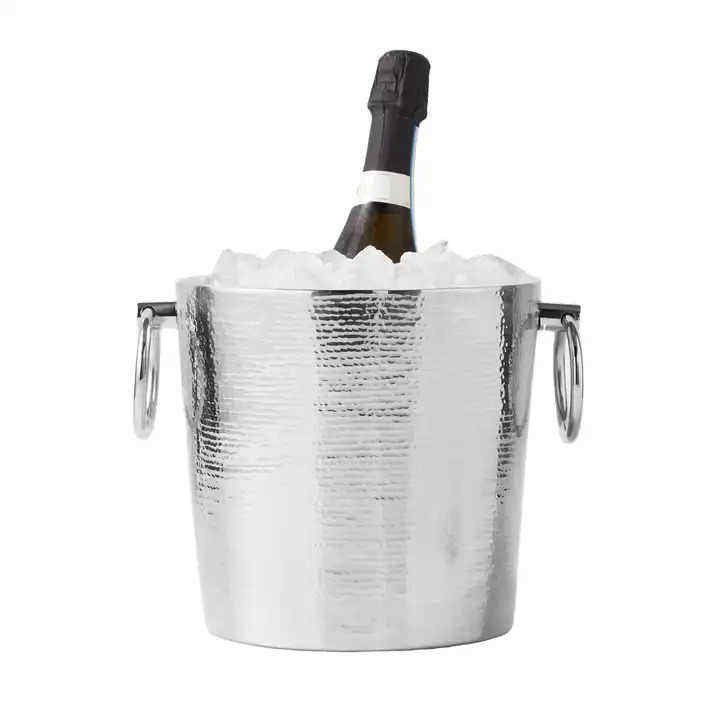 Seau à glace en acier inoxydable de conception martelée isolé pour une rétention plus longue pour les fêtes Seau à glace de qualité supérieure Accessoire pour boissons