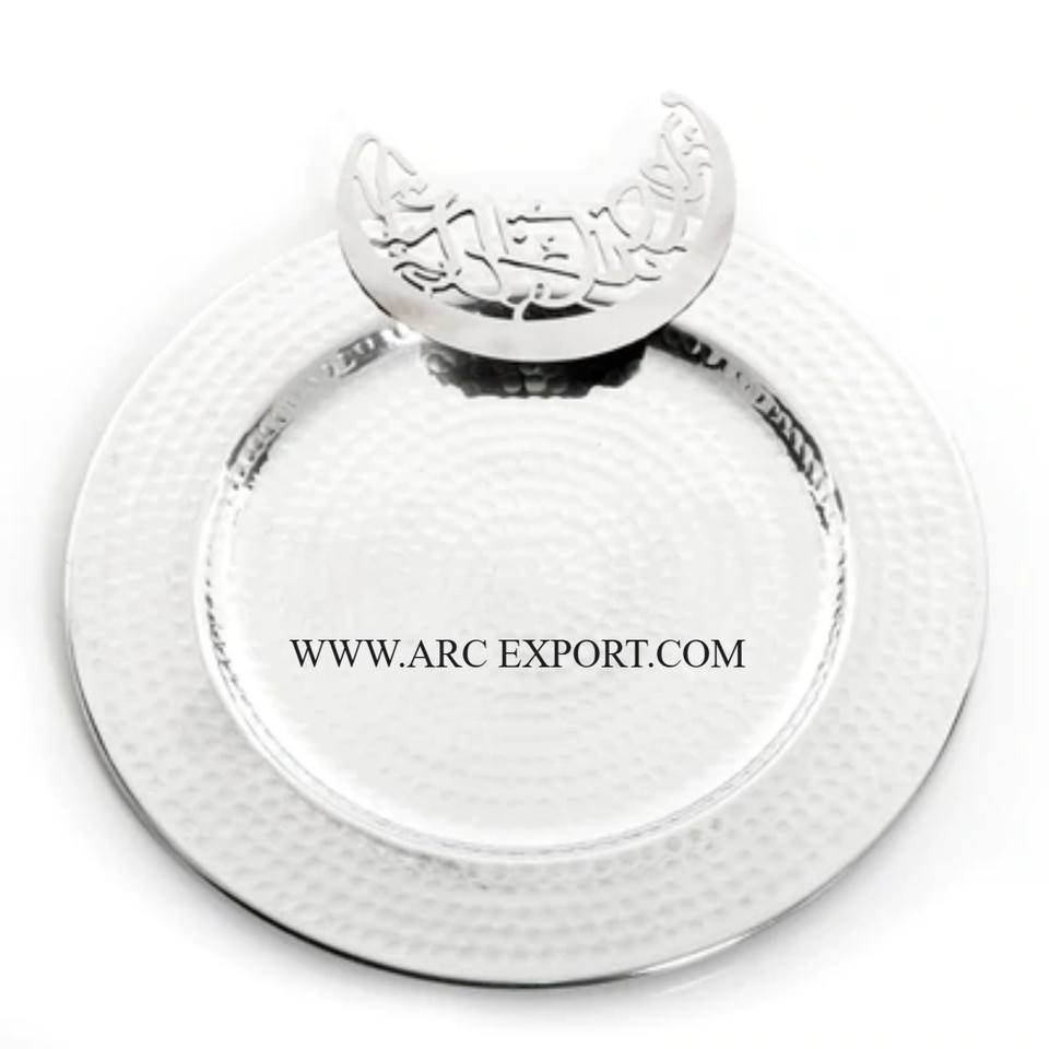Martelé Designer Silver Ware Accents Décoratifs Modernes Ramadan Plateaux Calligraphie Islamique Haute Exigeant Ramadan Plateau De Nourriture