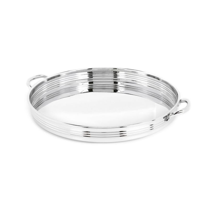 Plateau de service alimentaire en acier martelé de forme ovale en métal avec poignée de conception de fleur d'or pour une utilisation d'hôtel au prix le moins cher de l'Inde