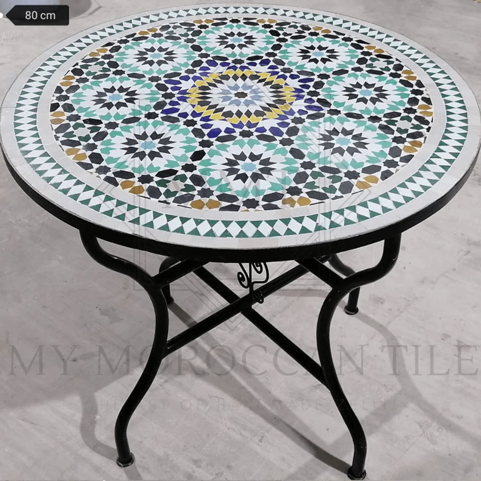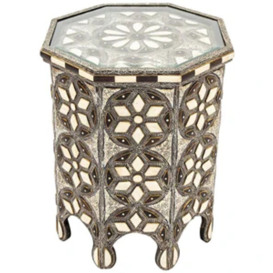 Tables marocaines de luxe en métal plaqué or de haute qualité, texture martelée, forme ronde, avec pieds en bois, design unique