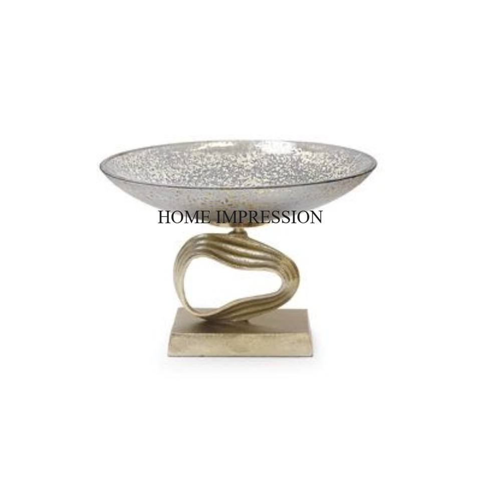Extérieur enduit de poudre de couleur blanche de texture martelée avec le bol intérieur de forme ronde en métal plaqué or avec la base unique de concepteur