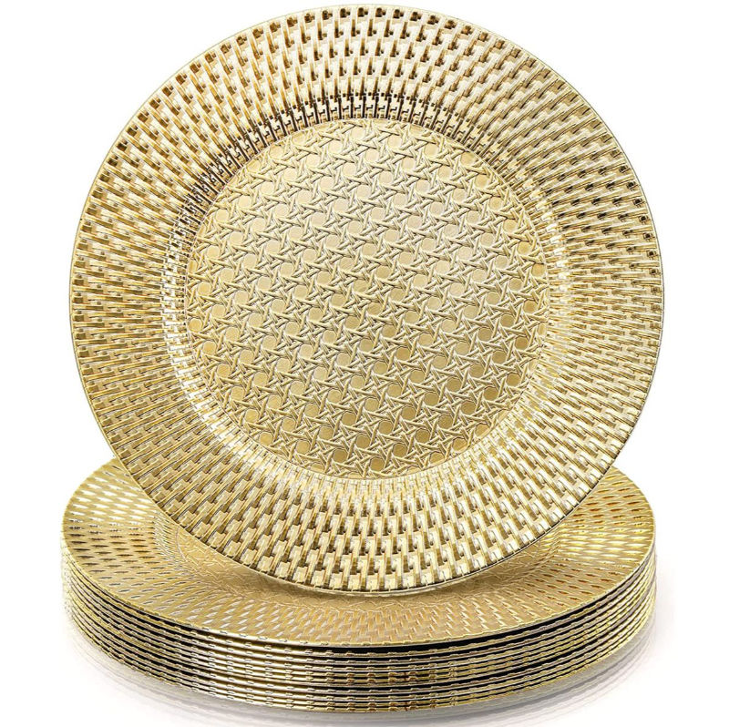 Assiettes de service rondes en métal martelé doré, idéales pour les événements, mariages, dîners et la décoration de table