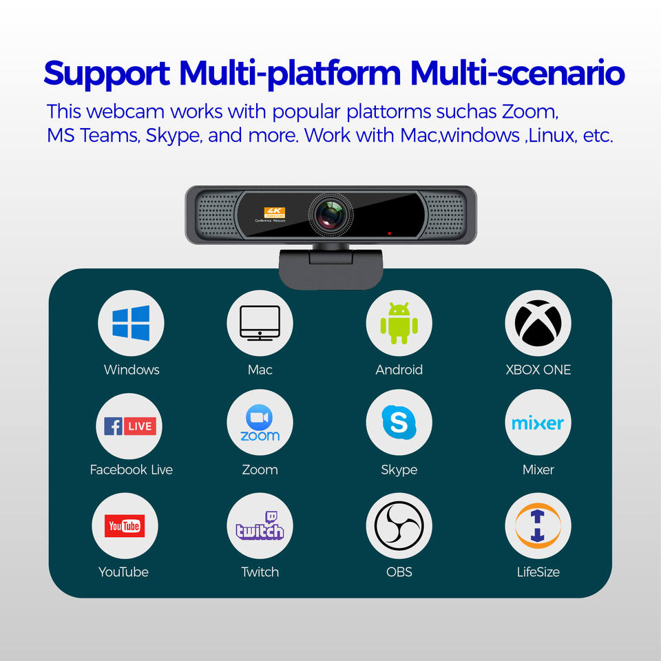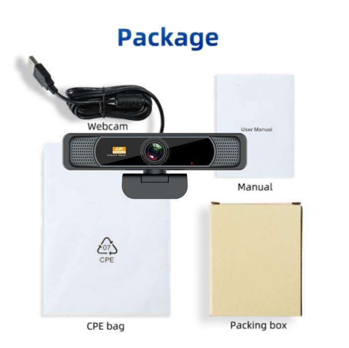 Caméra réseau professionnelle Hampo 1080p Capteur CMOS Mise au point automatique avec carte mémoire Microphone intégré USB Webcam 4k HD
