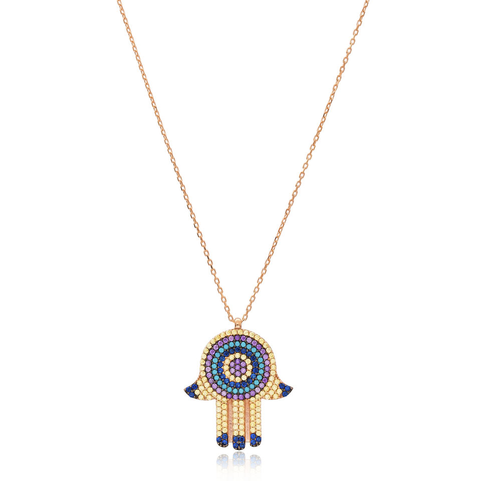 Hamsa Design pendentif à breloques en pierre mixte, bijoux turcs en argent Sterling 925 pour femme, fait à la main, vente en gros