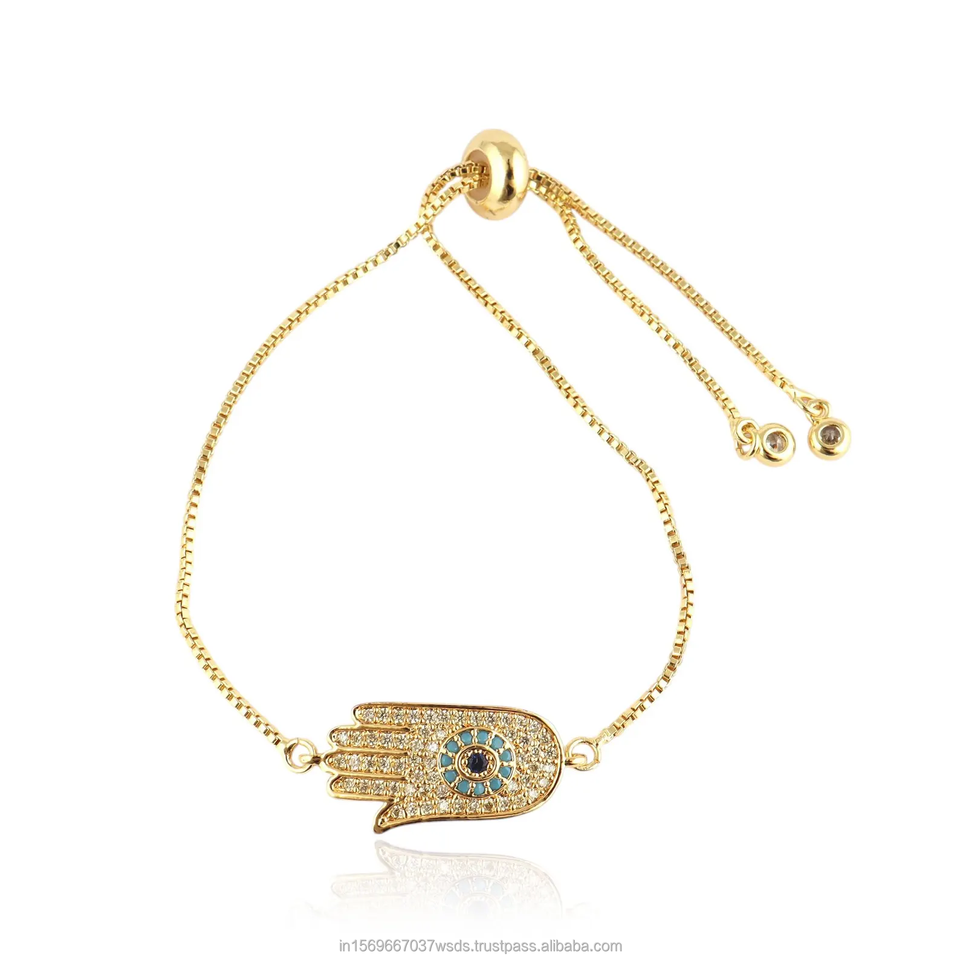 Breloque main Hamsa avec protection contre le mauvais œil Bracelet doré réglable de luxe Micro Pave Bijoux pour femmes