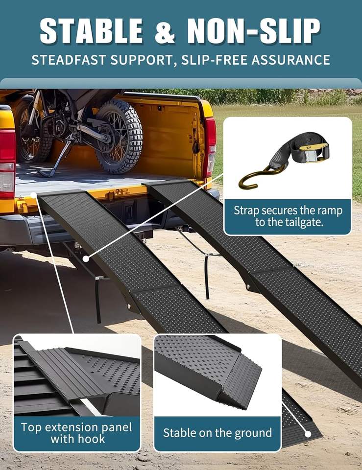 Hanak R23 7.5FT 750LBS Moto Remorque Camion Dirt Bike ATV VTT Voiture Rampe Sangle Poignée Boucle Vélo Stand pour Pick-up Camions