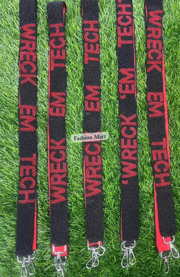 Sangle perlée à la main WRECK EM TECH Design personnalisé Rouge audacieux sur noir
