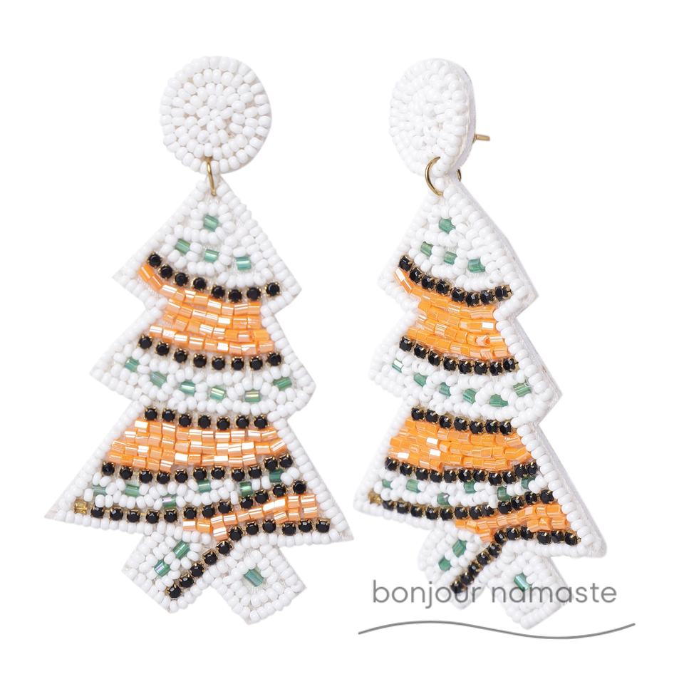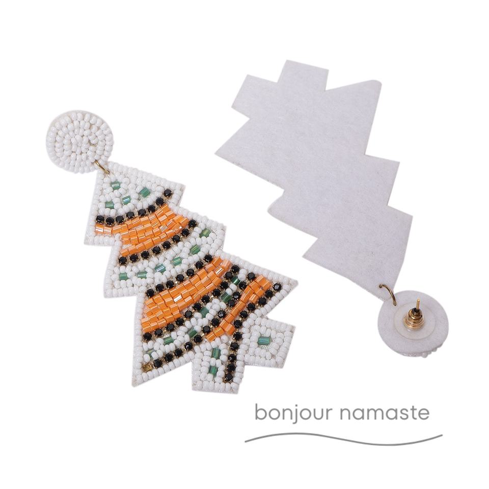 Boucles d'oreilles pendantes faites à la main en perles, pêche, vert, blanc | Bijoux de mode de Noël mignons et festifs | Accessoires de vacances en gros fabriqués en Inde