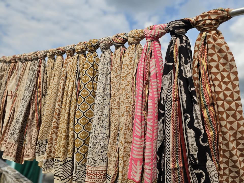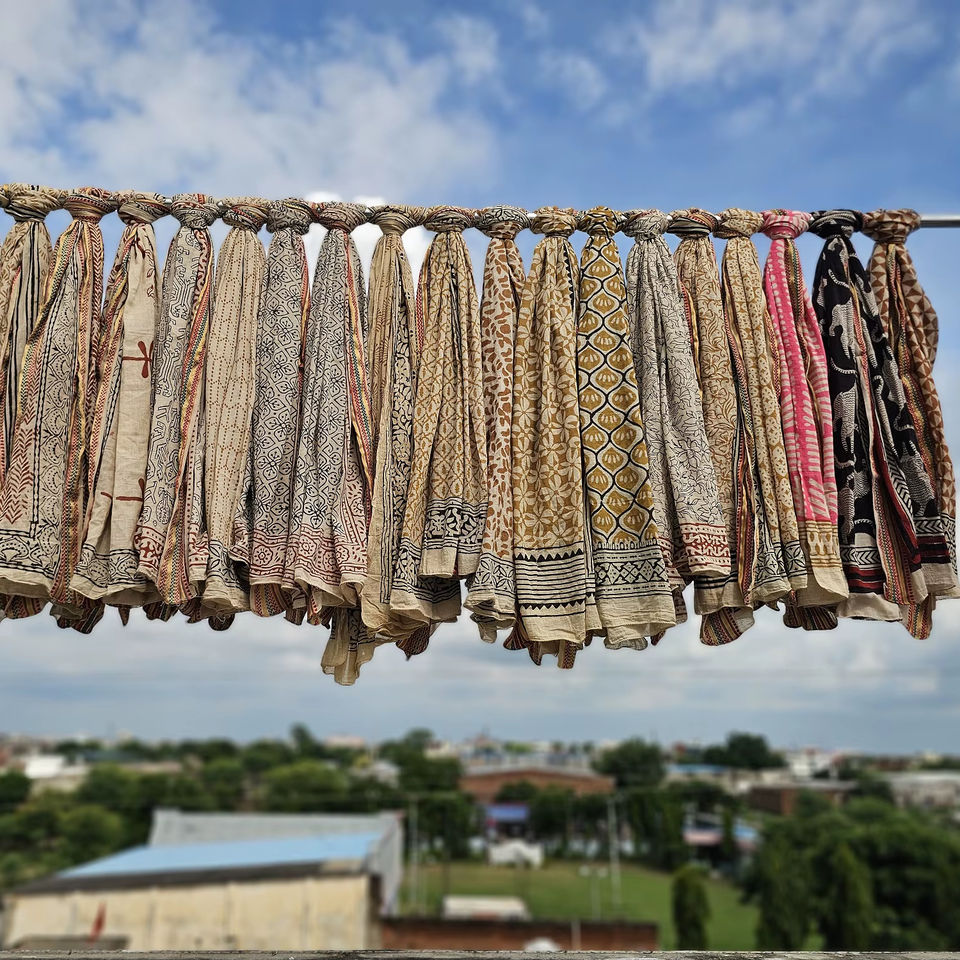 Nom du produit:Paréo en soie dorée à la frontière Bagru Block Print Sarong