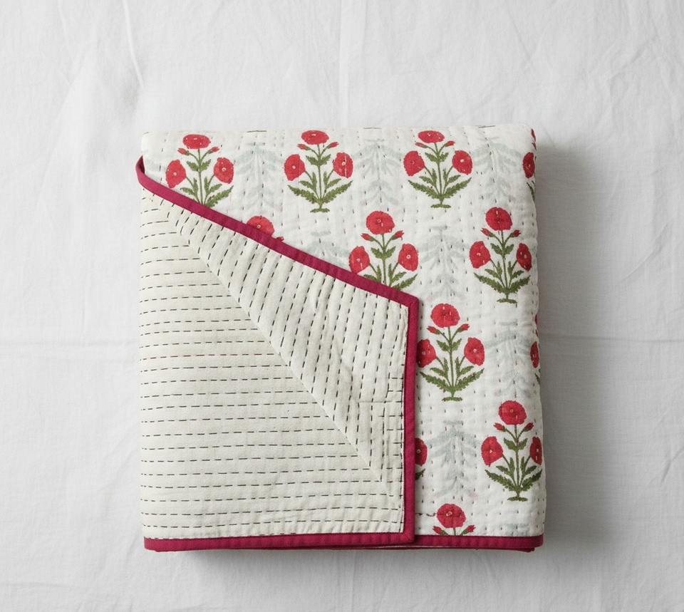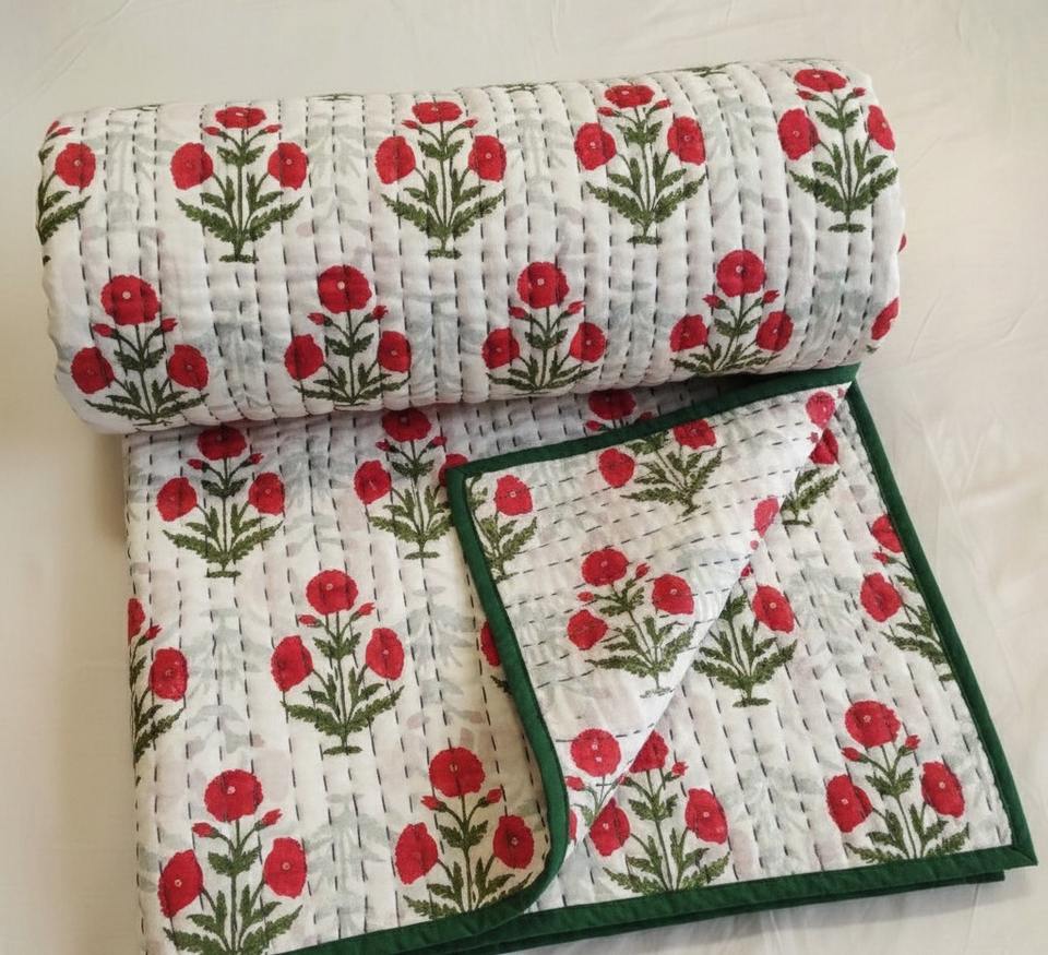 Couette Kantha en coton écologique à imprimé floral moderne Buti, fabriquée à la main, vente en gros, fabricant et exportateur indien