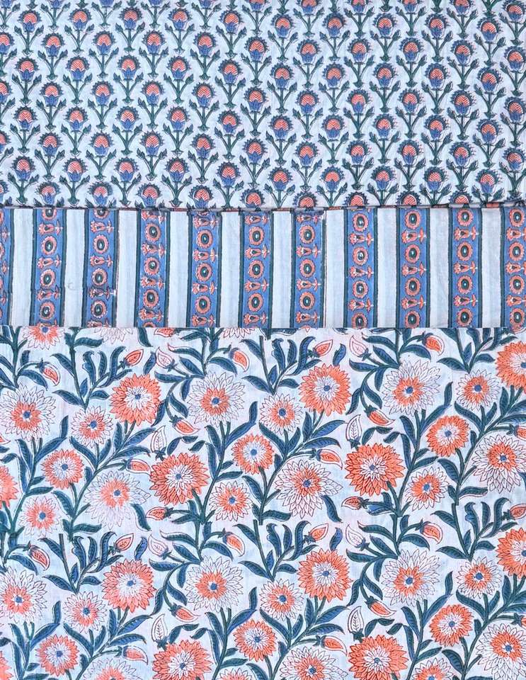 Tissu en coton imprimé à la main, motif Jaipuri traditionnel, 60x60 cm, pour robes
