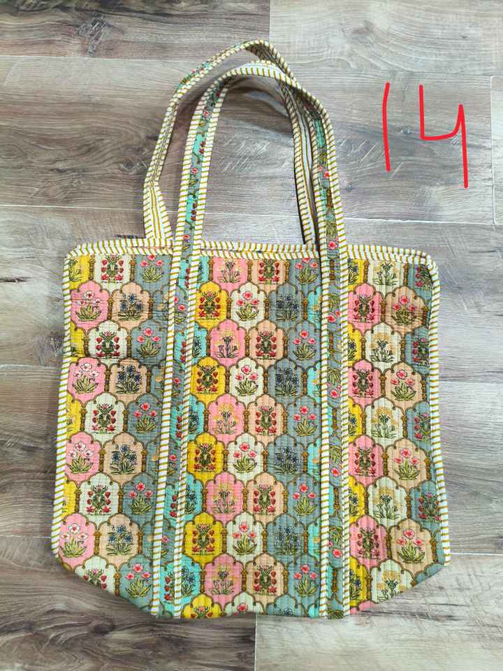 Sac fourre-tout matelassé en coton imprimé à la main, grand sac de week-end indien fait main, lavable