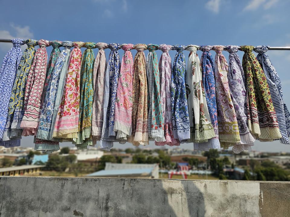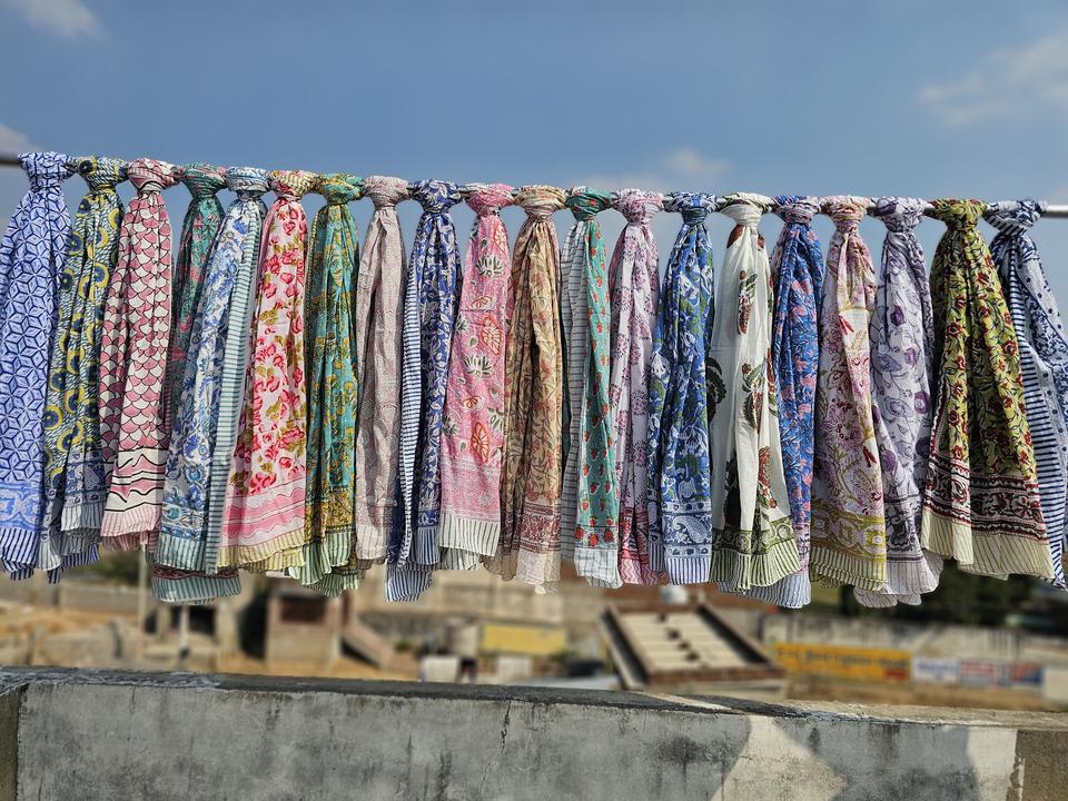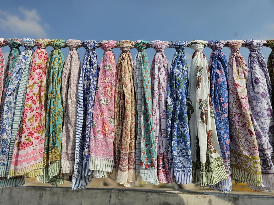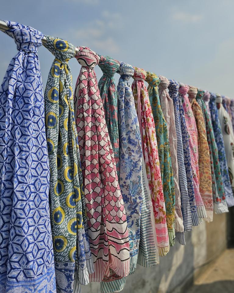 Sarongs, paréos et foulards imprimés à la main en Inde avec des blocs de bois imprimés