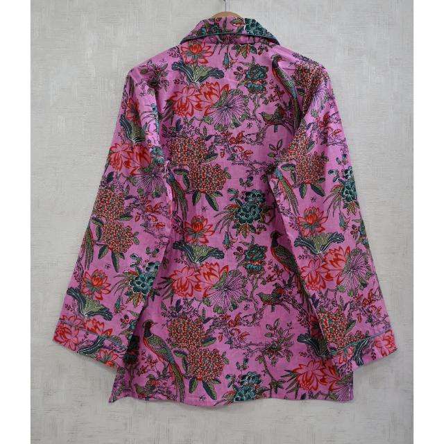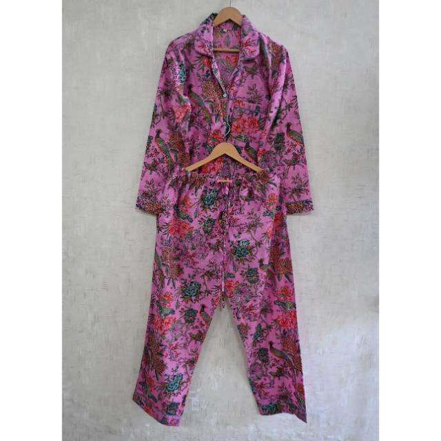 Ensemble de pyjama d'été en coton imprimé à la main, imprimé floral indien, pyjama de nuit, doux, respirant, séchage rapide, vêtements de nuit