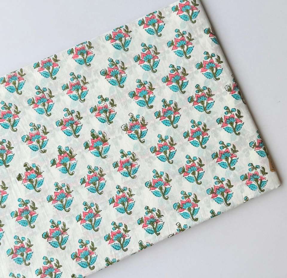 Tissu en coton cambriqué écologique à séchage rapide imprimé à la main 60x60 style Jaipuri traditionnel pour chemises, sacs et auvents pour filles et garçons