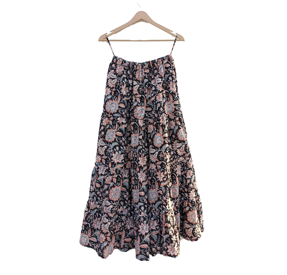 Main bloc imprimé Floral coton Maxi jupe femmes décontracté taille élastique robe d'été respirant vêtements ethniques