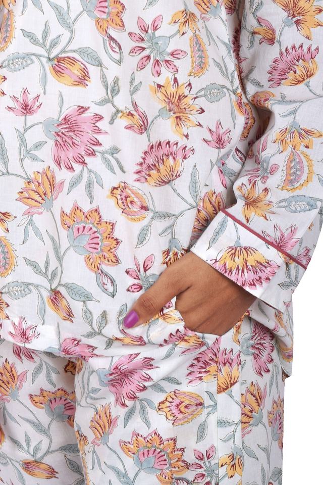 Ensemble de pyjamas en coton indien imprimé à la main pour femmes vêtements de nuit tissés de saison de printemps Style PJ faits à la main en Inde